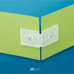 Samolepilen plastičen semi transparentni fleksibilen tečaj z dvema luknjama za vijake in lepljivo površino Namenjen kot dodatek za promocijska stojala ali pulte.