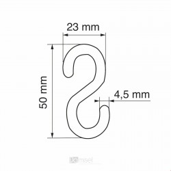 Namenjen za vse vrste obešalne sisteme. Kavelj za obešalnike dolžine 310 mm, ki se lahko raztegne do 3000 mm. Za obešanje logo enot, posterjev, okvirjev na steno ali strop. Nakup možen samo v celih paketih (100, 150, 200, 250 kos.)