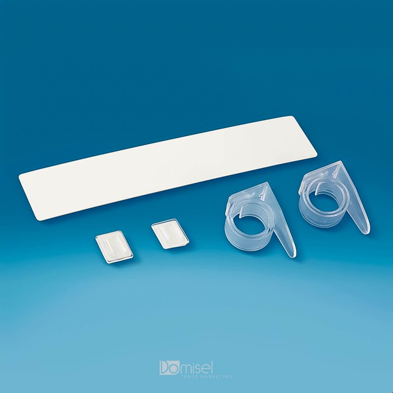 V kompletu 1 polžja sponka s samolepilno prijemalko in komunikacijo, veliko 250 x 50 mm. Nakup možen samo v celih paketih (10, 15, 20, 25 kos...)