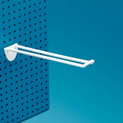 Plastična dvojna kljukica z avtomatskim kavljem, za obešanje na kartonske luknjičaste in navadne stene. Na izbiro v beli, črni in prozorni barvi.Na izbiro več dimenzij. Nakup možen samo v celih paketih (100, 200, 300 kos...)