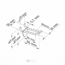 Plastična dvojna kljukica s protivlomno zaponko in  nosilcem za cenovko, ki se obesi na stene z vertikalnimi   luknjami (Razdalja med luknjami, 25 mm). Na kljukico, se lahko obesi censki žepek (ni na voljo v kompletu). Na izbiro v beli, črni in prozorni barvi.Na izbiro več dimenzij za kljukice. Na izbiro večji in manjši nosilci za cenovko. Nakup možen...