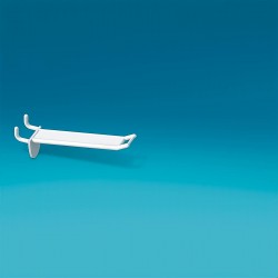 Bel nosilec za cenovke, ki se lahko obesi naenojne plastične in kovinske kljukice. Na nosilec se pritrdi gibljiva cenovka za enojne in dvojne kljukice (27 x 45 mm). Gibljiva cenovka NI priložena v kompletu. Na izbiro nosilci za 3, 4, 5, 6 mm debele kljukice. Nakup možen samo v celih paketih (100, 150, 200 kos...)