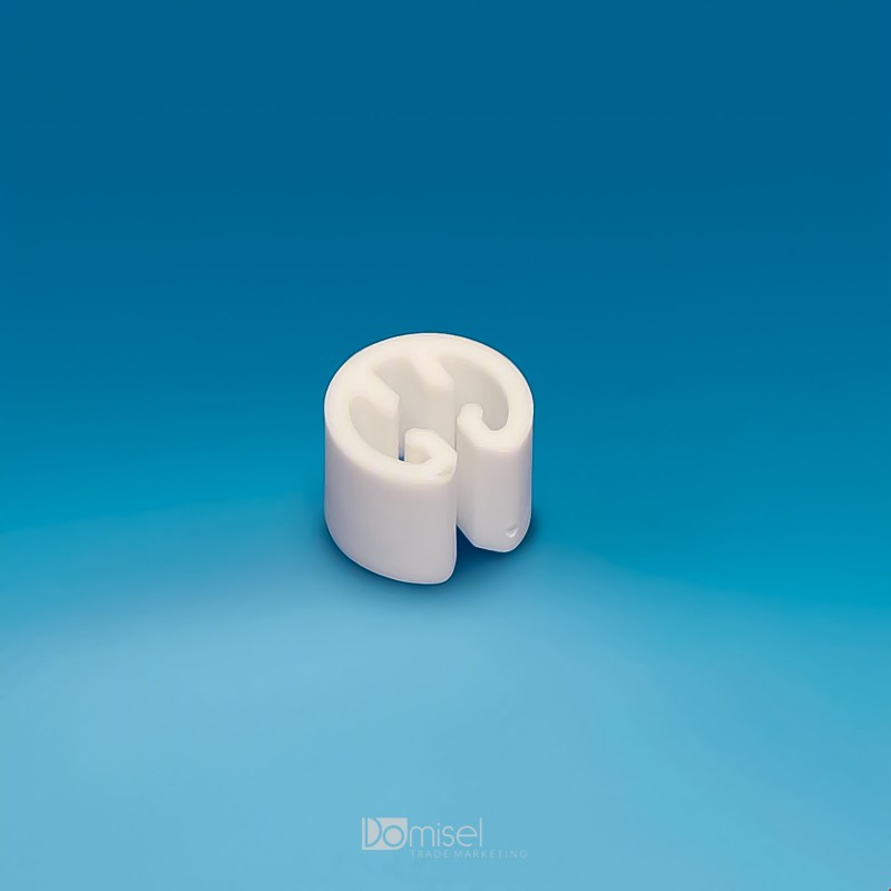 Univerzalni bel potiskač blaga za obešanje na enojne in dvojne kljukice. Omogoča boljšo pozicioniranje in izpostavitev izdelkov na kljukicah. Na izbiro v beli in prozorni barvi.