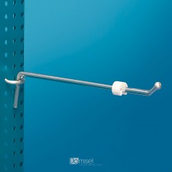 Bel potiskač blaga za obešanje na enojne in dvojne kljukice.Omogoča boljšo pozicioniranje in izpostavitev izdelkov na kljukicah.