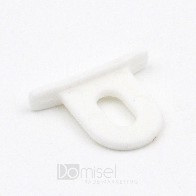 Prozorna plastična kljukica za obešanje preprostih profilov.