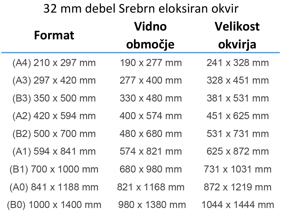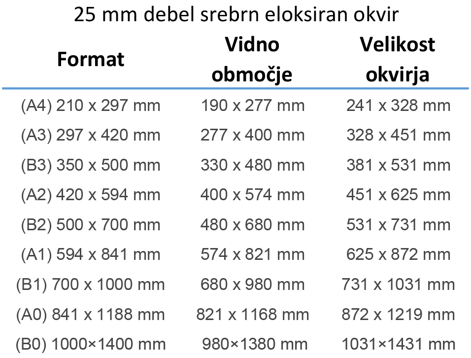 25 mm ali 35 mm debel srebrn eloksiran okvir na izbiro.