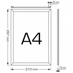 25 mm debel srebrn eloksiran okvirDvostranski dizajn z oglato ali zaobljeno obliko okvirja Čez komunikacijo se pritrdi akrilna folija. Sestava ni potrebna. LEGENDA SIMBOLOV