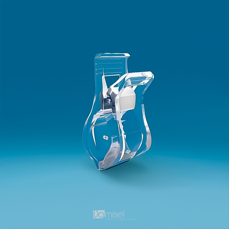 Prozorna plastična sponka za pritrjevanje komunikacij na razstavne izdelke, mize, stojala in pulte. Nakup možen samo v celih paketih (50, 100, 150, 200, 250 kos.)