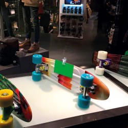 Prozorna plastična sponka za pritrjevanje komunikacij na razstavne izdelke, mize, stojala in pulte.