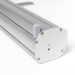 Izvlečni "rollup" mehanizem za promocijske grafike.Zgornja stran se pritrdi na klip letvice, spodaj v rollup mehanizem pa prilepi.Konstrukcija iz aluminija, ojačanost pod izdelkom za boljšo stabilnost.Ojačan vložek za nosilno palico.Komplet vsebuje prenosno torbo. Dimenzija grafike (1200 x 2050 mm) Grafika in namestitev v roll up mehanizem vključen v ceno.