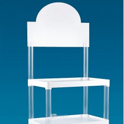Kvadratno plastično stojalo (360 x 360 mm) z logo enoto. Na izbiro stojalo s 3, 4 ali 5 policami.Po naročilu, naredimo tudi grafike.Po naročilu različne barve za police in cevi. Na voljo tudi kolesa: >>>