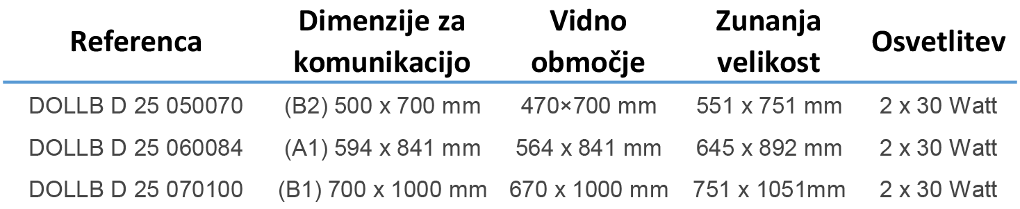 Velik LED totem za notranjo uporabo. Samo stoječi z prašno barvanim jeklenim podstavkom.Srebrna eloksirana aluminijasta struktura. Enostavna postavitev. Dimenzije : Zunanja : 620 X 1708 mm Notranja: 594 X 1682 mm Teža s pakiranjem : 41,500 kg. Na voljo v črni in sivi barvi okvirja. LEGENDA SIMBOLOV