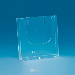 Stojalo, ki se sestavi skupaj iz enega dela plastične plošče. V stojalo se vstavi brošure, prospekte, letake in kartice. Stojalo se lahko postavi na mizo/pult ali s sponkami obesi na lamelno steno. na izbiro več velikosti za formate A4, A5 in 1/3 - A4 (brošure) Po naročilu, naredimo tudi grafike.