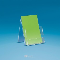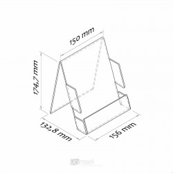 Narejen iz trpežne akrilne plošče.Za vstavljanje komunikacij/sporočila/kartice, za promocijo. Stojalo se postavi na mizo, pult ali polico. Nakup možen samo v celih paketih (10, 15, 20, 25 kos...)