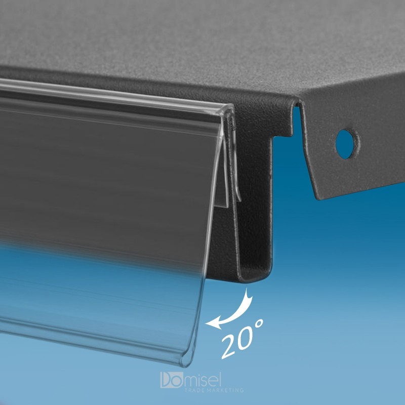 Prozorna censka letvica, 52 x 1000 (višina x dolžina), namenjena zapritrjevanje na trgovinske regale/police. V censko letvico se vstavi cenovke/listke/etikete/napise, velike do 60 mm. Censka letvica je nagnjena. Nakup možen samo v celih paketih (100, 200, 300 kos...). Na izbiro tudi z belim hrbtiščem.